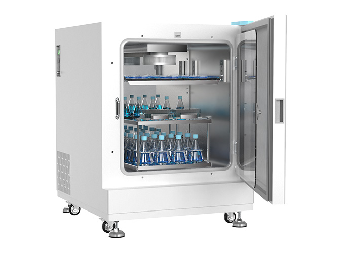 ● CO2振荡培养箱,集CO2培养箱与振荡培养箱于一体,具有占地面积小,载瓶量大等优点。