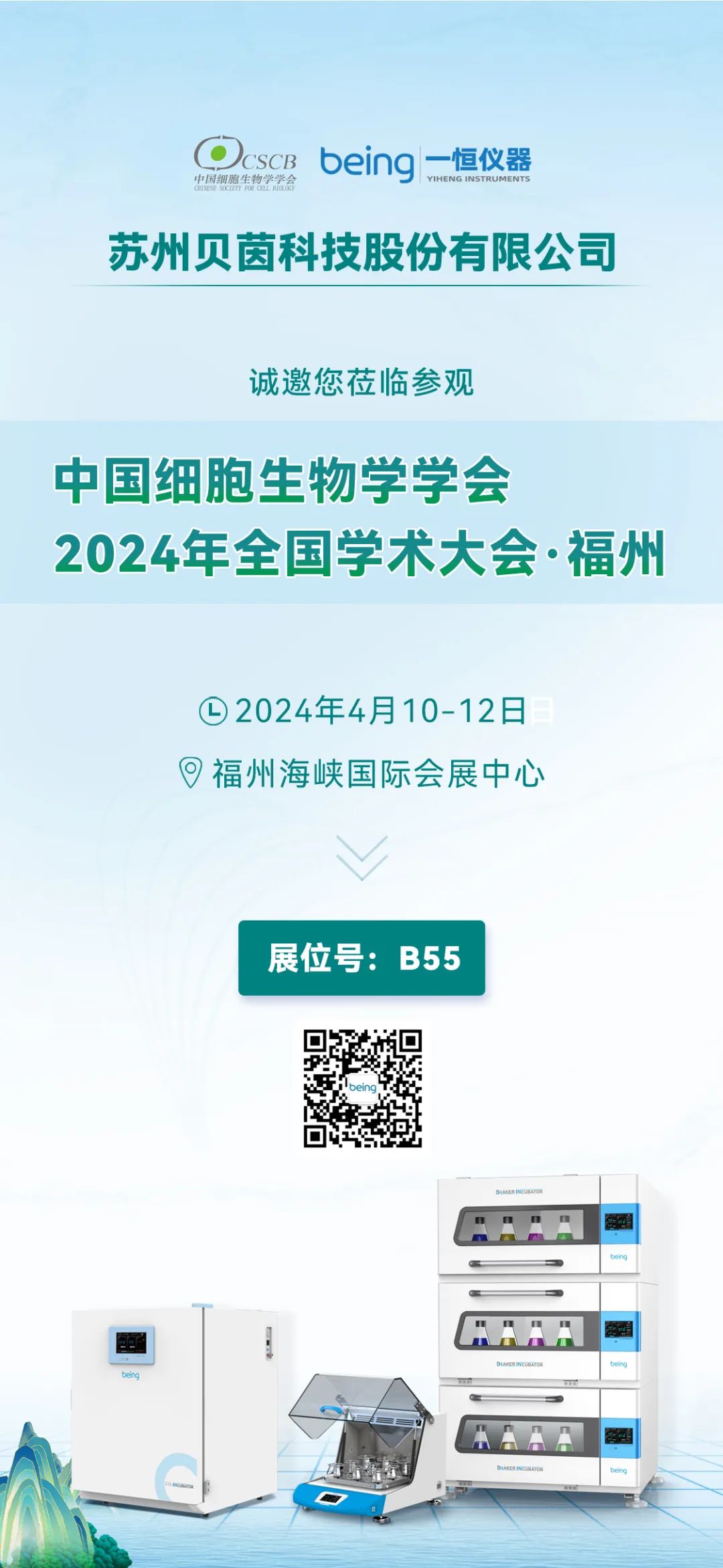 新闻资讯 您当前的位置:首页 > 新闻资讯 > 【邀请函】与贝茵科技 【邀请函】与贝茵科技相约福州 CSCB2024 2024-04-07 | 文章来源: | 点击率: 为促进我国细胞生物学领域研究人员的交流与合作,推动中国细胞生物学学科的发展,“中国细胞生物学学会2024年全国学术大会·福州”将于2024年4月8-12日在福建省福州市福州海峡国际会展中心举行。 贝茵科技将参加此次大会,并在4月10-12日现场设展,展位:B55,诚邀各位莅临现场,交流指导。 上一篇: 【展会预告】倒计时3天 贝茵科技与您一起预见CMEF2024 下一篇: 【邀请函】贝茵科技 CMEF2024,我们上海见! 相关新闻: 【公司新闻】与您相约春天 3月展会预告 生物安全培养箱 培养数据有底气 【公司新闻】“一马当先 恒启新程”贝茵科技2026年会暨颁奖典礼圆满收官 恭喜贝茵二氧化碳培养箱入选仪器信息网2025二氧化碳培养箱热度榜单Top10 【公司通知】关于2026年春节放假的通知 给药品先做个“体检” 半导体制冷综合药品光稳定性试验箱 分享到微信新浪微博腾讯微博人人网QQ好友0 返回新闻列表 >>
