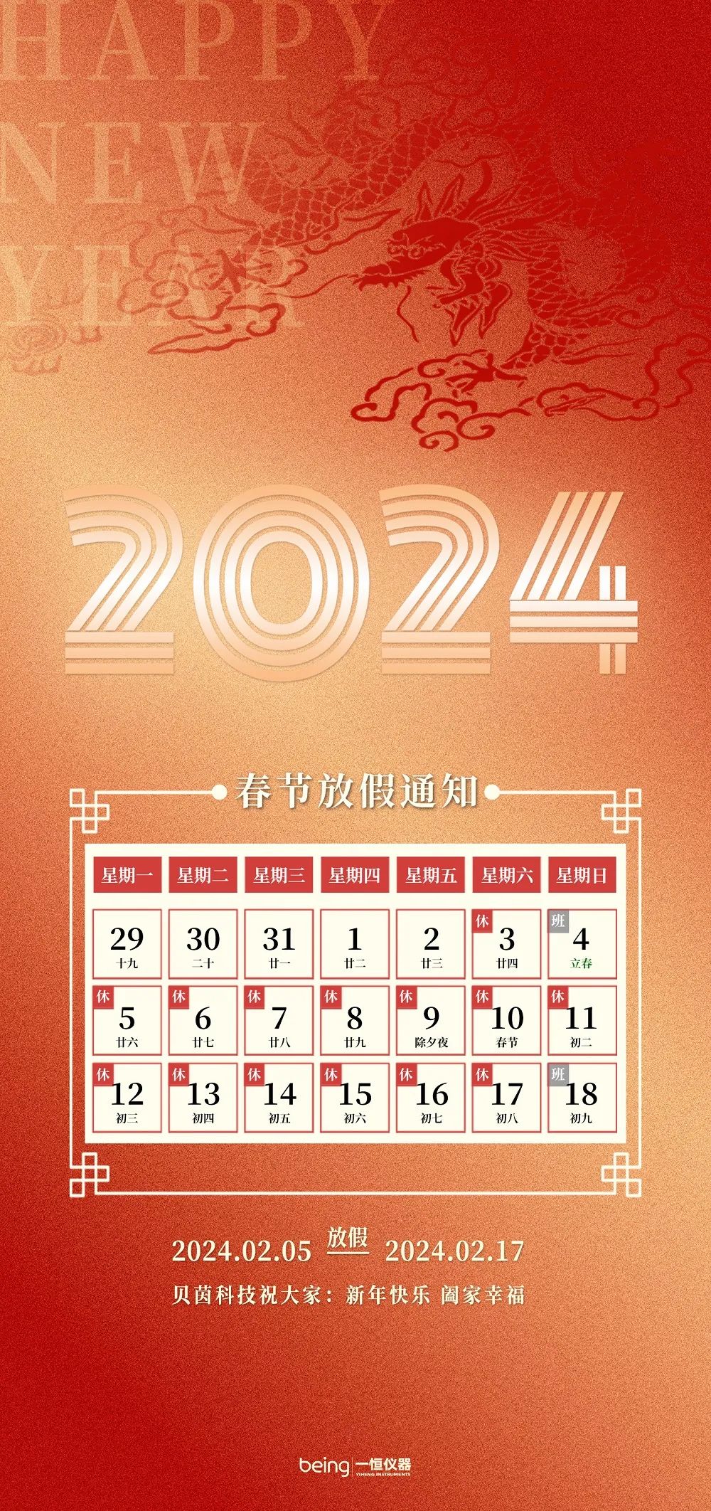 贝茵科技2024春节放假通知