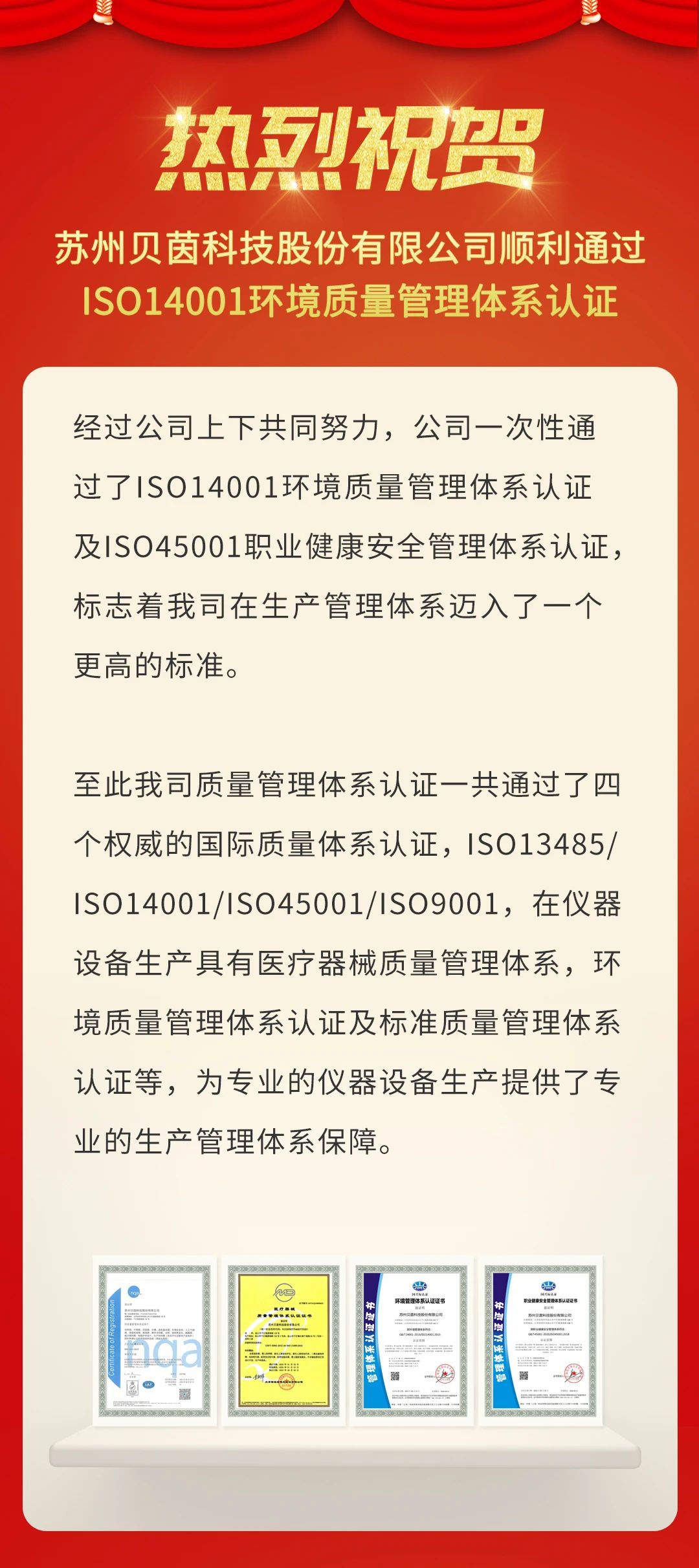 热烈祝贺苏州贝茵科技股份有限公司通过ISO14001环境质量管理体系认证