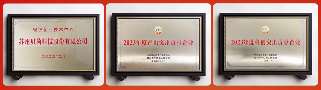 苏州贝茵科技股份有限公司作为企业代表出席以上会议,获得“省级企业技术中心”荣誉授牌,并喜获“千灯镇2023年度产出突出贡献企业”和“千灯镇2023年度科创突出贡献企业”两项殊荣。