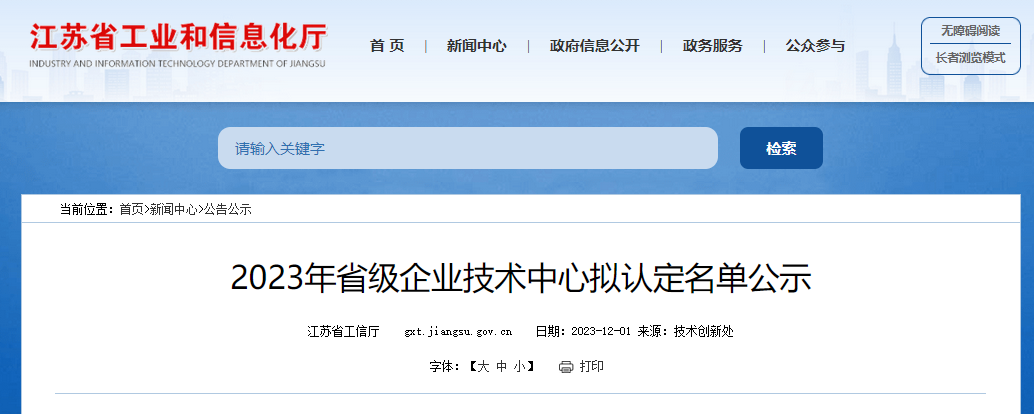 江苏省2023年省级企业技术中心