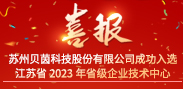 苏州贝茵科技股份有限公司 成功入选江苏省2023年省级企业技术中心 近日,江苏省2023年省级企业技术中心拟认定名单现已公示结束,...